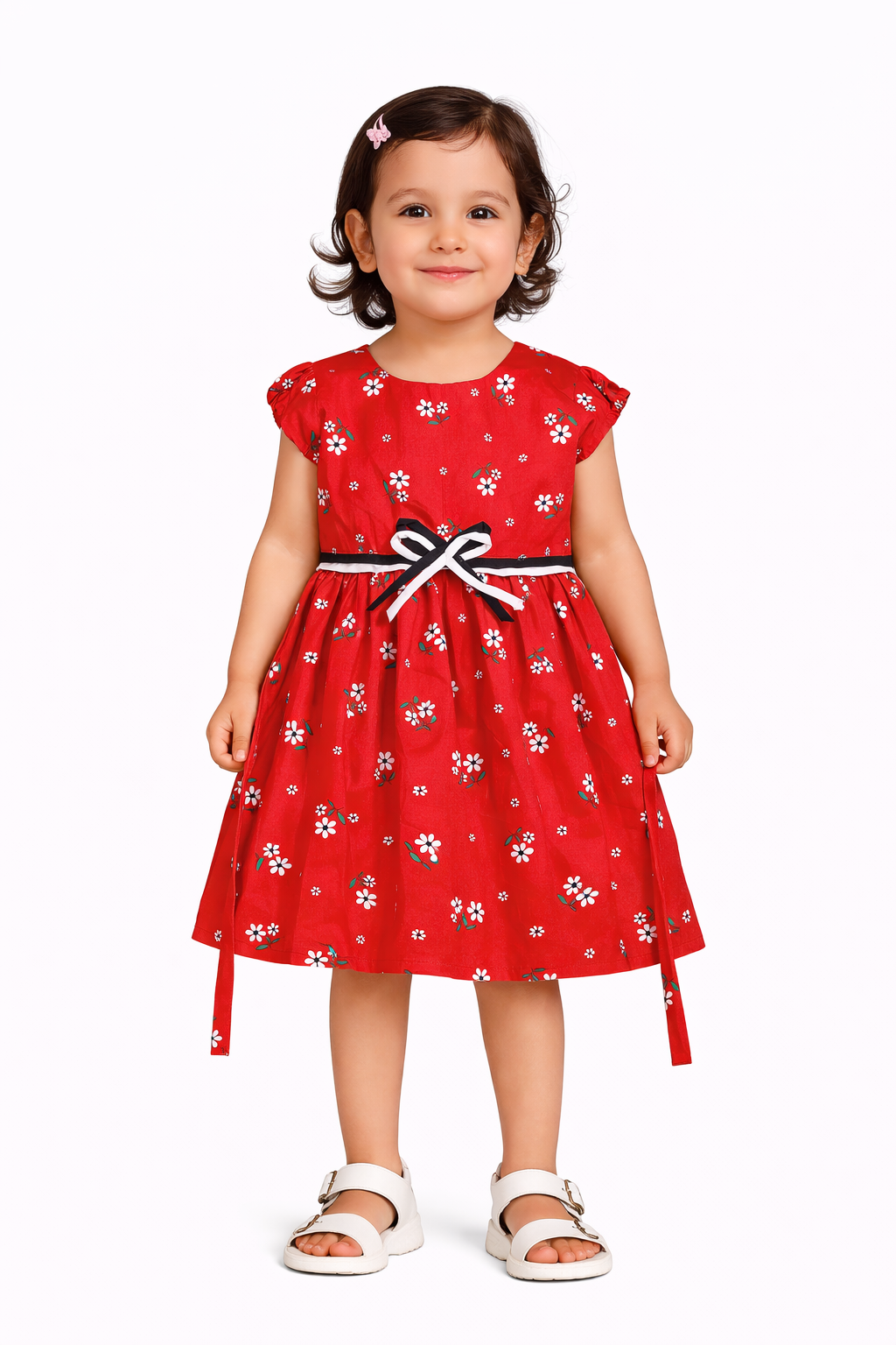 Vishtish New Born Baby Girls’ Cotton Frocks, Knee Length, Regular Wear, Red Dresses